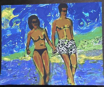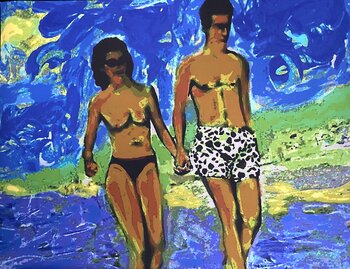 In diesem Werk, das in Giclée-Drucktechnik realisiert wurde, erforsche ich die Dynamik menschlicher Verbindung und Emotion. Die expressiven, fast abstrakten Farbströme unterstreichen die fließenden, manchmal chaotischen Beziehungen in unserem Leben. Indem ich diese zwei Figuren Hand in Hand darstelle, eingehüllt in eine Welt aus kühnen, impulsiven Pinselstrichen, lade ich den Betrachter ein, das Zusammenspiel von Nähe und Individualität zu reflektieren.… Es ist eine Feier des menschlichen Geistes und der gegenseitigen Unterstützung. Dieses Kunstwerk bringt eine lebendige, nachdenkliche Energie in jedes Zuhause.