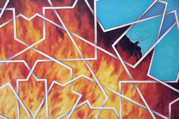 Das Hauptmotiv des Gemäldes ist ein typisch marokkanisches Ornament (Arabeske) - das sogenannte "Spinnengewebe Gottes", das den islamischen Glauben der arabischen Welt symbolisiert, wobei die farbigen Kaheln im Netz die einzelnen Länder symbolisieren. Das Leid, das Elend und die Zerstörung, die durch all die Kriege und Unruhen… verursacht wurden, werden durch die zerbrochenen Kaheln symbolisiert. Heute, im Jahr 2024, brennt das Feuer der Zerstörung immer noch und es entstehen ständig neue Brandherde - daher die Frage "Quo vadis?".