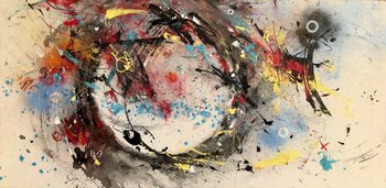 „Remaking the World“ ist ein fragmentiertes Universum, das sich zu einer brodelnden Matrix öffnet. Ein bewegter Kreis, zerbrochen und neu zusammengesetzt, wird zum Schmelztiegel einer Welt im Werden. Zwischen Chaos und Lebensausbrüchen tragen Farbexplosionen und Materiekratzer den vitalen Impuls zum Neuanfang.