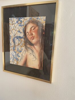 In dieser Arbeit verwende ich Aquarell und Gold, um die Schönheit und Widerstandsfähigkeit des menschlichen Geistes zu erforschen. Inspiriert von der japanischen Kintsugi-Technik, die Narben und Unvollkommenheiten als Teil der Geschichte eines Objekts feiert, stelle ich eine weibliche Figur in einem Zustand gelassener Akzeptanz dar. Die goldenen Risse und das zarte Gitterwerk des dekorativen Hintergrunds symbolisieren, wie unsere Erfahrungen und… Wunden uns stärken und verschönern. Dieses Gemälde ist nicht nur eine Hommage an die innere Stärke, sondern lädt Sie auch dazu ein, eine Botschaft der Hoffnung und Wiedergeburt in jeden Raum zu bringen.