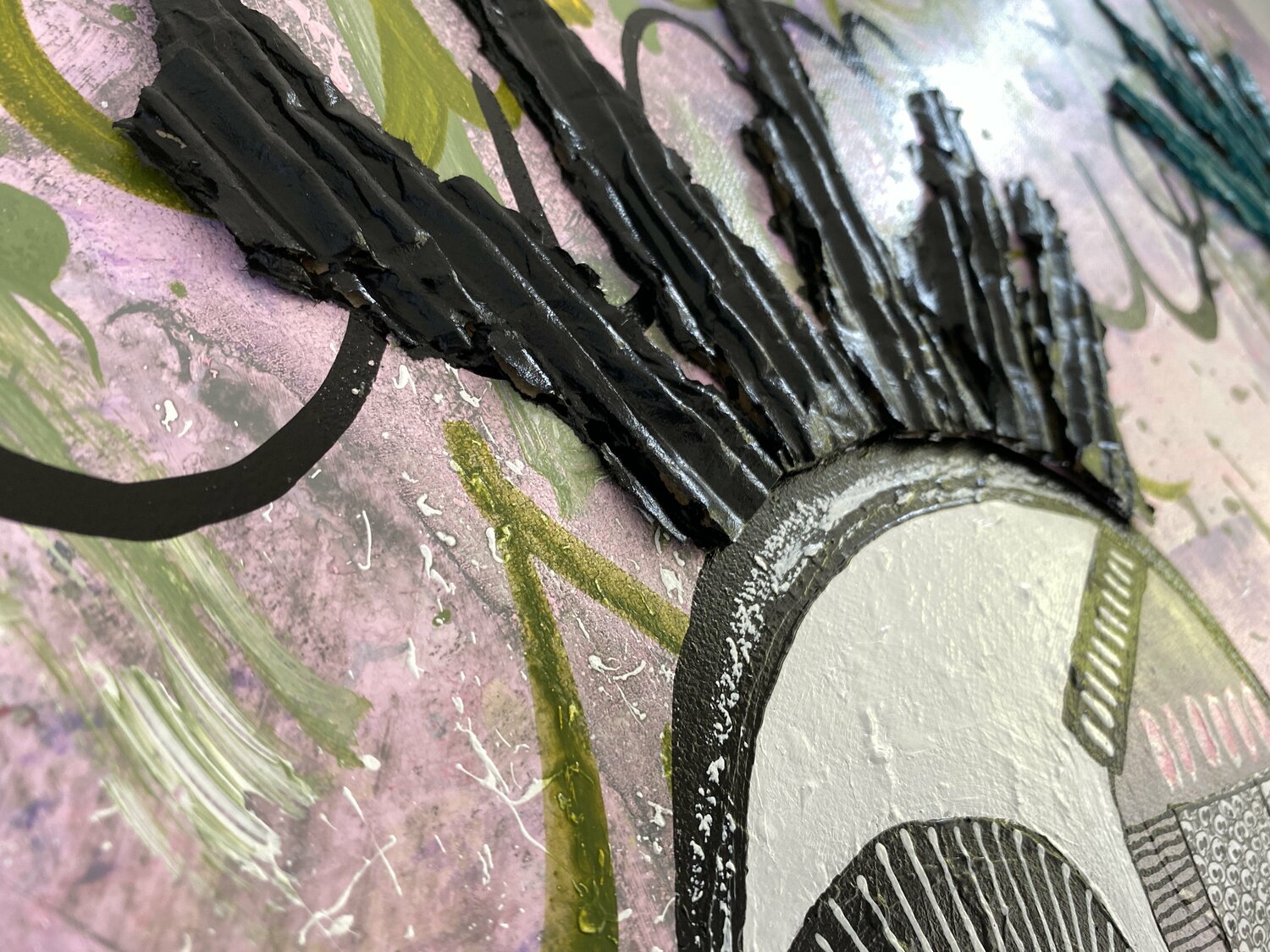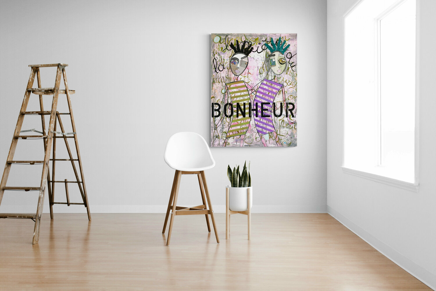 Ein Kunstliebhaber, Kauf getätigt am August 2024: "Le Jardin Extraordinaire", Acryl, Graffiti auf Leinwand , 19,7x59,1in