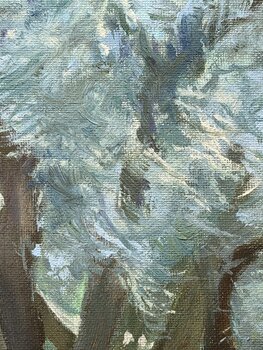 Im Wald herrscht eine ganz besondere Stille, wenn der Schnee zu schmelzen beginnt. Ich habe versucht, diese schwere, feuchte Atmosphäre und das durch die Bäume brechende Licht einzufangen. Und ich habe es geliebt, diese kühlen Blautöne und die schweren Äste zu malen.