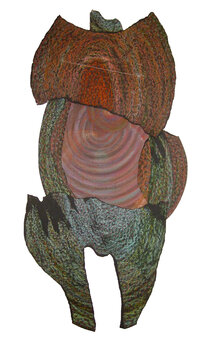 Dies ist kein rechteckiges Werk, sondern eine geformte Papierarbeit. Sie besteht aus mehreren zusammengefügten Zeichnungen. Sie spiegelt meine Überlegungen über die Männer unserer Spezies wider; Sie können Ihre eigenen Schlüsse daraus ziehen.