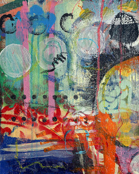In meiner Arbeit habe ich leuchtende Acrylfarben, Graphit und Sprühfarbe verschmolzen, um einen emotionalen Sturm hervorzurufen. Es ist eine Hommage an die Abstraktion und den Expressionismus, bei der jeder Pinselstrich und jede Markierung eine überwältigende Energie und Leidenschaft mit sich bringt. Ich möchte, dass der Betrachter eine Welle von Emotionen spürt, die die Seele erweckt und seinem Zuhause eine lebendige Dynamik verleiht. Diese Leinwand… ist ein kühner Dialog mit Farben und Formen!