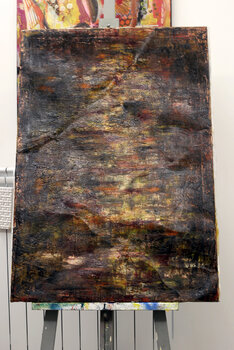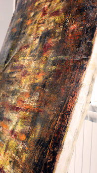 Bei der Erstellung dieser Arbeit habe ich versucht, jedem Pinselstrich und jedem Farbtupfer intensive Emotionen zu verleihen. Mit Öl und Spray habe ich eine abstrakte Landschaft konstruiert, die eine feurige Reise in die Unendlichkeit symbolisiert, eine Reise durch die Nuancen des Lebens und die Schönheit des Werdens. Die Energie, die diese Leinwand freisetzt, verwandelt jeden Raum in eine Umgebung voller Leidenschaft und Geheimnis, eine Einladung,… über den eigenen existenziellen Weg nachzudenken. Die Stripeline-Technik ist ein innovativer künstlerischer Ansatz, der verschiedene Materialien kombiniert, um lebendige und dynamische Farbstreifen zu erzeugen. Diese Methode ermöglicht es Künstlern, auf einzigartige Weise mit Texturen, Farben und Formen zu experimentieren, was zu Werken führt, die Aufmerksamkeit erregen und die visuelle Wahrnehmung anregen. Die Arbeit stellt bewusst Eingriffe dar, die auf die Herstellung der Craquelé-Technik (Risse und Risse) abzielen.