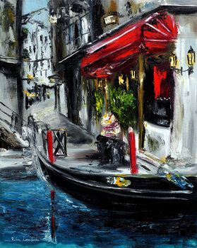 Dieses faszinierende Ölgemälde im impressionistischen Stil fängt die ruhige und faszinierende Schönheit Venedigs perfekt ein. Im Vordergrund sitzt ein erfahrener Gondoliere neben seiner Gondel, die sanft über die ruhigen Wasserstraßen der Stadt gleitet. Im Hintergrund rundet eine bezaubernde venezianische Straße die bezaubernde Atmosphäre des Gemäldes ab. Die zarten Pinselstriche und die exquisite Farbgebung des Kunstwerks strahlen Ruhe und Nostalgie… aus und entführen den Betrachter in diese einzigartige Stadt. Nach seiner erfolgreichen Europatournee wurde dieses Kunstwerk auf renommierten Kunstmessen in Paris, Innsbruck und zwei Ausstellungen in Madrid gezeigt.