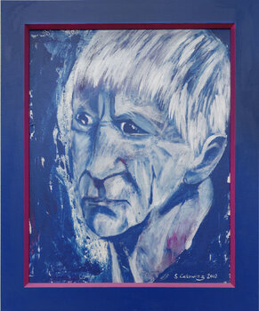 Ein Porträt der deutschen Kunstsammlerin Hella Pachen. In diesem Werk wollte ich die Tiefe menschlicher Emotionen ausdrücken, die Leidenschaft einer starken Persönlichkeit. Kräftige Acrylstriche im expressionistischen Stil, intensive Blautöne schaffen eine lebendige Atmosphäre. Dieses Bild bringt eine kraftvolle Energie in jeden Raum. Eingefasst ist das Werk in einen farblich abgestimmten Holzrahmen.