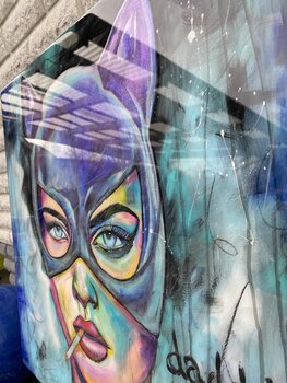 Die Maske ist mit einem besonderen Farbeffekt versehen. Je nachdem, in welchem Winkel man das Werk betrachtet, schillert die Maske in verschiedenen Farben. Erst scheint sie normal, dann geht sie in ein blau über und zuletzt wird sie lila. Das gibt diesem Werk noch einen besonderen Touch. Zum Abschluss wurde das Werk mit einer Epodex-Resin Schicht überzogen. Diese verleiht dem Werk… einen spiegelartigen Glanz.