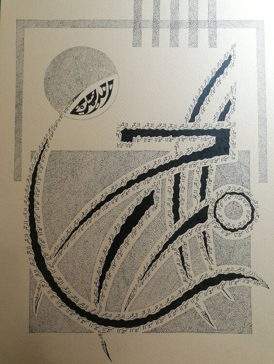 Sajid Hussain spielt kunstvoll mit Acryl, Aquarell und Pastell. Seine abstrakte Kalligrafie zeugt von seinem experimentellen Stil, in dem er dicke Acrylschichten verarbeitet. Er widersetzt sich traditionellen Normen und verbindet Minimalismus und Abstraktion mit lebendiger zeitgenössischer islamischer und arabischer Kalligrafie. Seine Werke vermitteln Leidenschaft und Gelassenheit und strahlen eine emotionale Vitalität aus, die den Betrachter fesselt.