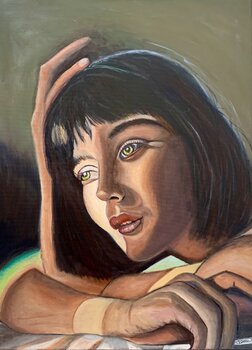 Das Mädchen mit dem Schatten. Wie der Titel schon sagt, kann es mehrere Bedeutungen haben. Es ist Sache des Betrachters zu interpretieren, was der Schatten bedeutet. Es kann mehrere Winkel haben.