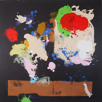 Ich habe meine Emotionen in dieses Werk einfließen lassen und Acryl und Tinte gemischt, um eine lebendige Farbexplosion auf dunkler Leinwand zu erzeugen. Die abstrakten Formen und kräftigen Pinselstriche vermitteln ein Gefühl von Chaos und Schönheit. Dieses Gemälde bringt dynamische Energie und lebendige Emotionen in jeden Raum und lädt den Betrachter ein, die Ebenen von Gefühl und Fantasie zu erkunden. Es ist ein schillernder Tanz aus Spontaneität… und Tiefe.