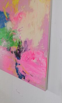 Dieses Werk ist ein Gefühlsausbruch, bei dem leuchtende Farben aufeinanderprallen und auf der Leinwand tanzen. Ich habe mein Herz in die Mischung aus leuchtendem Rosa, energetischem Grün und tiefem Blau gesteckt und die Suche nach Liebe und Verbundenheit eingefangen. Es lädt eine lebendige, hoffnungsvolle Energie in Ihren Raum ein und erinnert Sie daran, sich weiterhin nach dem schönen Chaos unserer Herzen zu sehnen, es zu fühlen und anzunehmen.