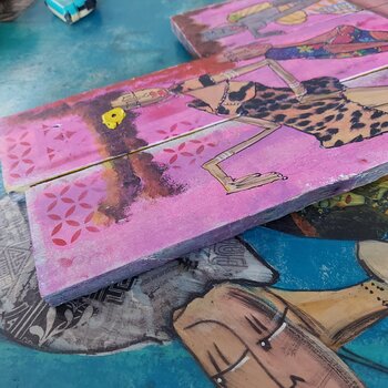 In dieser Arbeit wollte ich die lebendige Energie und die Verbundenheit farbenfroher Charaktere einfangen und Leichtigkeit und Intensität miteinander verbinden. Materialien wie Acryl, Collage und Filz erzeugen eine lebendige, fast greifbare Textur, die zum Berühren einlädt. Es ist ein Ausdruck von Vielfalt und Bewegung – perfekt, um Ihrem Zuhause Dynamik und Wärme zu verleihen.
