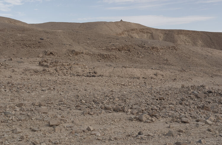 Dieses Foto fängt die stille Weite der Negev-Wüste in Israel ein, wo sich die Erde endlos in gedämpften Ocker- und Steintönen erstreckt. Das felsige Gelände und die geformten Hügel zeugen von Widerstandsfähigkeit und Zeitlosigkeit, geformt von Jahrhunderten des Windes und der Stille. Die Komposition betont Einsamkeit und raue Schönheit – eine Einladung zum Innehalten, Atmen und Spüren der meditativen Stille der Wüste. Eine einzelne, steinhaufenartige… Form am Horizont setzt einen subtilen Blickfang und suggeriert sowohl menschliche Präsenz als auch den anhaltenden Dialog zwischen Natur und Erinnerung.