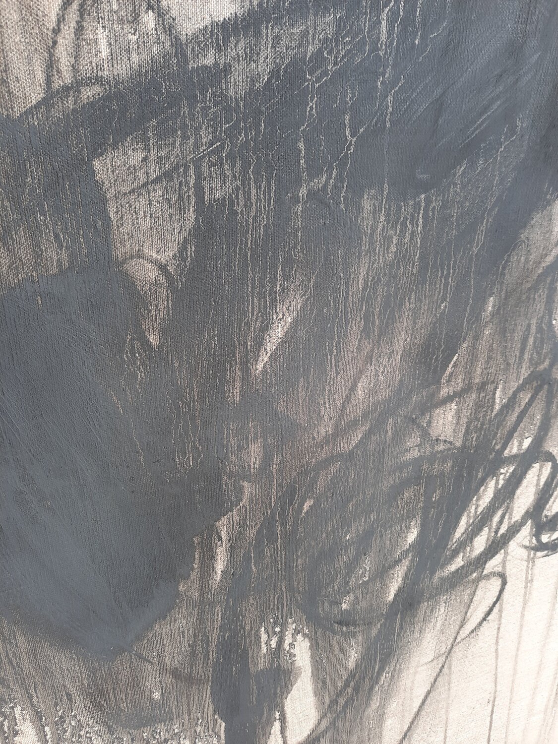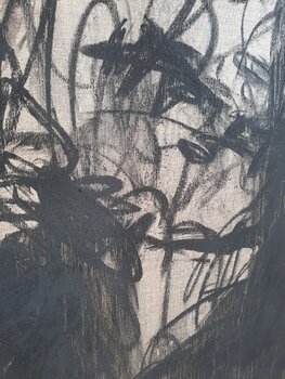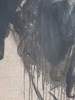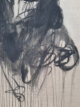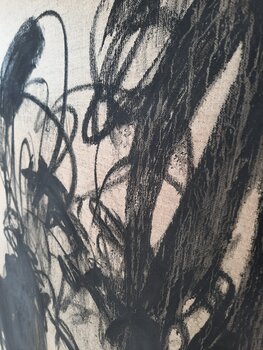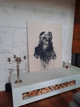 "Der Kuss" - Hommage an Gustav Klimt. In diesem Werk habe ich mit Kohle auf Leinen gearbeitet, um eine leidenschaftliche und doch einfache Abstraktion menschlicher Verbundenheit zu schaffen. Die minimalistischen Linien und Formen verkörpern tief verwobene Gefühle und die Intimität einer Umarmung. Es geht darum, Emotionen in ihrer rohesten Form festzuhalten und eine Atmosphäre von Wärme und Dynamik zu erschaffen, die jeden Raum belebt. Pudrig matte… Kohle tanzt über Leinen. Je nach Lichteinfall erscheint der Farbton der Kohle von Schwarz über Anthrazit bis gräulich. Damit Sie sich ein möglichst genaues Bild machen können, habe ich in den Aufnahmen die Farbintensitäten je nach Lichteinfluss festgehalten. Tauchen Sie ein in die Kraft dieses Werkes und lassen Sie Ihre Seele tanzen! Werk mit Fixativ behandelt.