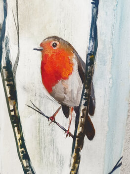In meiner Arbeit habe ich Öl und Aquarell kombiniert, um eine metaphysische und surrealistische Szene zu schaffen, in der die Natur Konventionen herausfordert. Es ist ein Tanz zwischen dem Vertrauten und dem Ungewöhnlichen; Schlanke Birken ragen wie Säulen in den Himmel, und bunte Fische schwimmen durch die Luft, zerren an den Fäden der Fantasie und vermitteln ein Gefühl von… Freiheit und Staunen. Diese Leinwand ist nicht nur ein Kunstwerk, sondern ein Fenster in eine Welt, in der alles möglich ist, und verleiht Ihrem Zuhause eine verträumte, eindrucksvolle Energie.