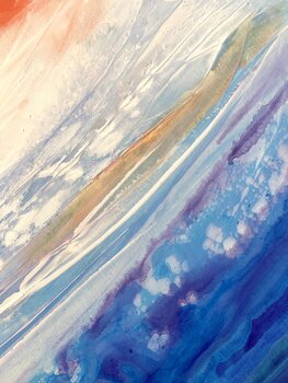 Ich habe mit Schichten aus Blau, Weiß und Orange gearbeitet, um einen Effekt von Tiefe und Bewegung zu erzeugen und so Ebbe und Flut eines Binnenmeeres zu evozieren.