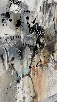 In dieser Verschmelzung von Emotion und urbaner Komplexität habe ich Acryl, Pastell und Graphit mit Sprühstößen übereinandergelegt, um eine Seele einzufangen, die durch das Chaos navigiert. Meine Striche tanzen zwischen abstrakt und figurativ und umfassen den Expressionismus, um ein Gefühl des Abdriftens und der Suche nach Verbindung hervorzurufen. Die Farbtöne und Texturen schwingen mit dem Herzschlag der Stadt mit und laden den Betrachter ein,… die Energie eines Raumes zu spüren, der sowohl überwältigend als auch inspirierend sein kann.