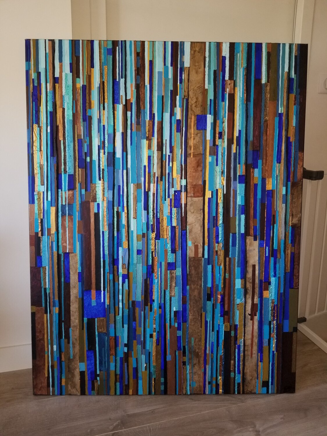Ein Kunstliebhaber, Kauf getätigt am März 2024: "Arbres de lumière", Acryl, Collage auf Leinwand , 39,4 x 39,4 in