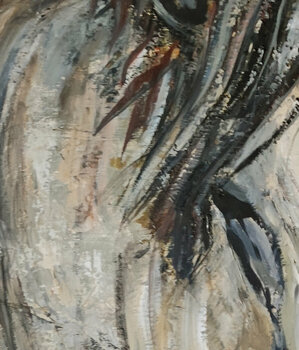 Cavaliere Sophie Dumont wollte ihre Leidenschaft für Pferde mit diesem Gemälde eines Pferdes in Dressurhaltung mit einem Isabelle-Kleid teilen. Das Material ist nach wie vor ebenso kräftig gearbeitet in Grau-, Beige- und Weißtönen, abgesetzt von einer roten Mähne, was die Leinwand weniger klassisch macht. Tisch in Öl und Messer gearbeitet. Wir finden die gleiche Rechnung wie in den anderen Themen.