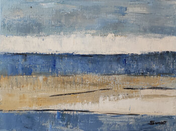 „Lumière de Nacre“ von Sophie Dumont bietet eine zarte und nuancierte Vision der Küstenlandschaft der Normandie. Die Verwendung von Öl auf Leinwand ermöglicht es dem Künstler, die Subtilität von Farbtönen und Texturen einzufangen und so eine Atmosphäre zu schaffen, die an die Ruhe des Strandes erinnert.
