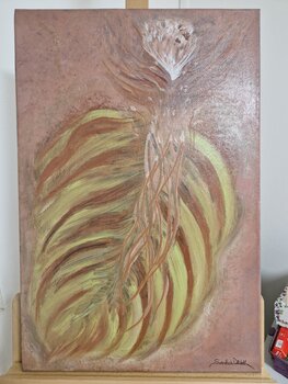 Dieses Kunstwerk ist eine tiefgründige Auseinandersetzung mit dem Wesen des Lebens. Mithilfe von Acrylfarben werden metaphysische Formen sichtbar gemacht. Ich wollte die unsichtbare Wurzel einfangen, diese unterirdische Energie, die alles Leben nährt. Wenn Sie es in Ihrem Zuhause aufhängen, wird es eine sanfte Schwingung von Erdung und Licht verbreiten und zur Kontemplation sowie zu einer innigen Verbindung mit dem einladen, was zugleich geheimnisvoll… und fundamental ist.