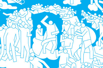 Künstlerisches Zitat aus Michelangelos „Das Jüngste Gericht“. Ein Meisterwerk der Kunstgeschichte, „übersetzt“ in die Sprache des Kommunikationsdesigns.