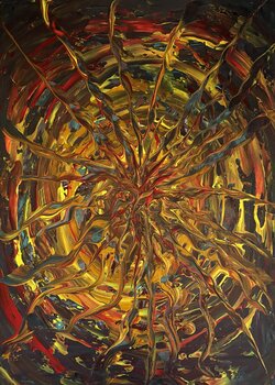 In diesem Werk wollte ich die Essenz der Lebensenergie einfangen. Die ineinander verschlungenen Linien und warmen Töne erzeugen eine pulsierende Bewegung, fast wie ein Herzschlag im Zentrum eines Wirbels. Jeder Pinselstrich strahlt Kraft und Dynamik aus und verleiht dem Raum Wärme und lebendige Energie. Dieses Werk vermittelt die innere Stärke, die wir alle besitzen.