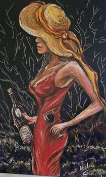 In diesem Werk habe ich Leidenschaft und Eleganz in jeden Pinselstrich gelegt und die lebendige Freude am Genuss des Lebens gefeiert. Die warmen Farbtöne und fließenden Linien ihres Kleides und Hutes verkörpern Selbstbewusstsein und Anmut, während die feinen Details den Betrachter einladen, den Duft reifer Trauben und die Freude des Augenblicks zu spüren. Dieses Gemälde wird jeden Raum mit Wärme, Raffinesse und einer inspirierenden Energie erfüllen.