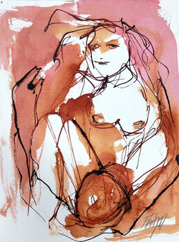 In diesem Werk habe ich rohe Emotionen durch lockere Linien und warme Aquarellfarben eingefangen und die menschliche Form auf eine Weise eingefangen, die sich sowohl intim als auch ausdrucksstark anfühlt. Der Tanz zwischen Bleistift, Tinte und Aquarell erzeugt eine dynamische Spannung, die Verletzlichkeit und Stärke verkörpert. Dieses Kunstwerk erfüllt Ihren Raum mit leidenschaftlicher Energie und einem Gefühl tiefer menschlicher Verbundenheit.