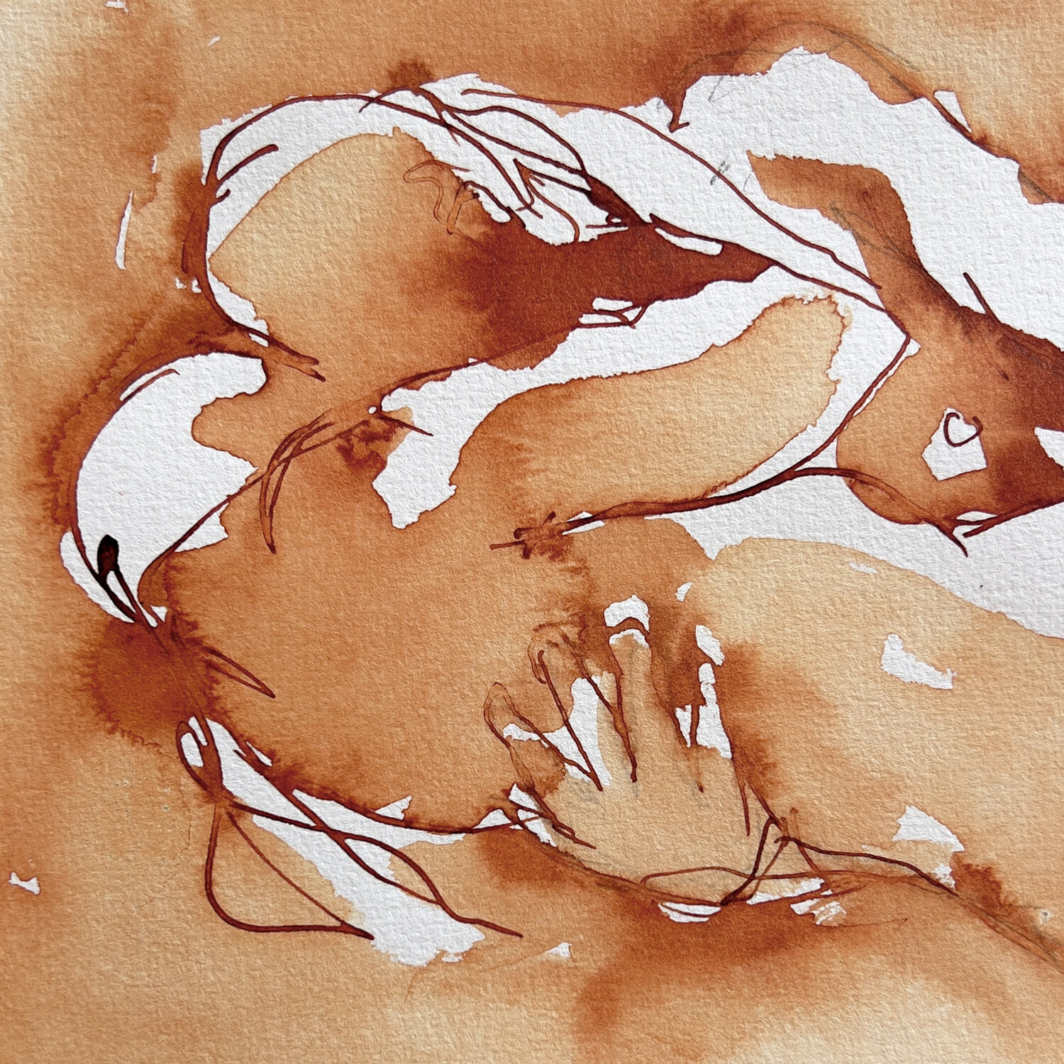 In dieser Serie von Zeichnungen und Gemälden stehen Beziehungen, Verlangen und Intimität im Mittelpunkt. Jeder von uns hat seine eigene Persönlichkeit, ein bestimmtes Individuum, das am besten zu ihm passt. Geschlecht und Geschlechterrollen sind weder essenziell noch zwingend, ebenso wenig wie die gesellschaftlichen Normen, nach denen wir alle leben. Wir alle brauchen die Verbindung zu unserer eigenen Persönlichkeit, und wie sich dieses Bedürfnis… manifestiert, hängt von der Beziehung zwischen den Individuen ab. Durch solche Verbindungen finden wir zu unserem wahren Selbst und damit zu innerem Frieden. In diesem Werk vermittle ich die Intimität und Zärtlichkeit zwischen Liebenden und Lebensgefährten, ob gemeinsam oder getrennt.