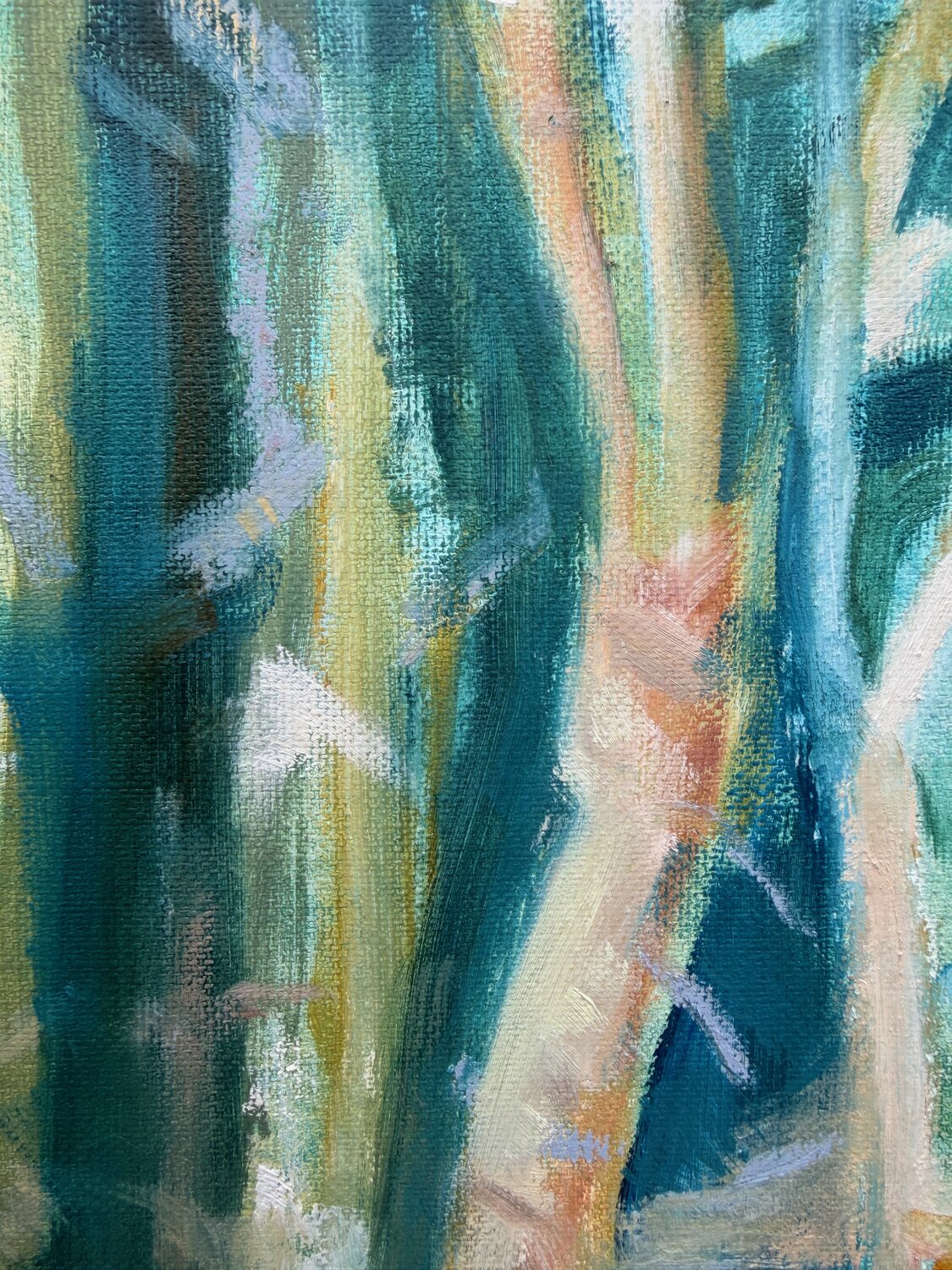 Dieses Werk ist Teil einer Serie, die auf meinen täglichen Spaziergängen im Wald um Helsingør, meinem Wohnort, entstanden ist. In diesem Bild wollte ich die Energie des Waldes zum Ausdruck bringen. Ich arbeite gern mit den Schattierungen im Wald; sie erzählen oft unterschiedliche Geschichten und regen unsere Fantasie an.