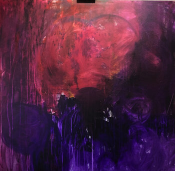Die Mischung aus tiefem Lila und leuchtendem Pink fängt eine intensive innere Energie ein. Die abstrakten Formen wirbeln und tropfen und spiegeln die Komplexität von Transformation und Mysterium wider. Dieses Werk strahlt eine kraftvolle, leidenschaftliche Stimmung aus, die dazu einlädt, die eigenen Tiefen zu spüren und zu erkunden und den Raum mit Faszination und emotionaler Bewegung zu füllen.