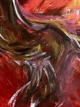 Die flammende Entschlossenheit, aus alten Bahnen auszubrechen, das Herz höher schlagen zu lassen und dem eigenen Feuer zu folgen, das waren die Energien, die mir beim Malen wichtig waren.