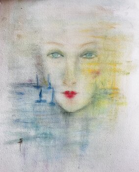 In diesem Werk wollte ich die zerbrechliche und flüchtige Essenz eines Gesichts einfangen, das zwischen Traum und Wirklichkeit schwebt. Die Pastellfarben und Pigmente verschmelzen sanft und schaffen eine zarte und doch intensive Atmosphäre, in der Farben mit Licht spielen. Dieses Werk lädt zum Nachdenken ein und vermittelt eine subtile und beruhigende Energie, die Harmonie und Geheimnis in Ihr Zuhause bringt.