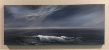 Diese große Meereslandschaft imitiert kühle Winterfarben und kühlt das Gemälde ab. Die wunderschön geformte, eigenständige Welle und die Streifen am Himmel stehen im Mittelpunkt des Gemäldes.