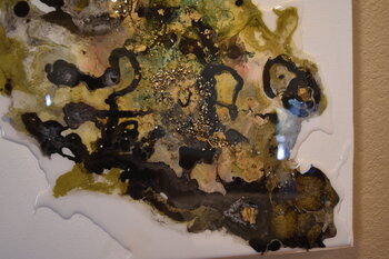 Diese Schönheit ist vielschichtig, mit Acryl, Farbe, Tinte, Harz, Glitzer und Glas. Brillant und Modern!!