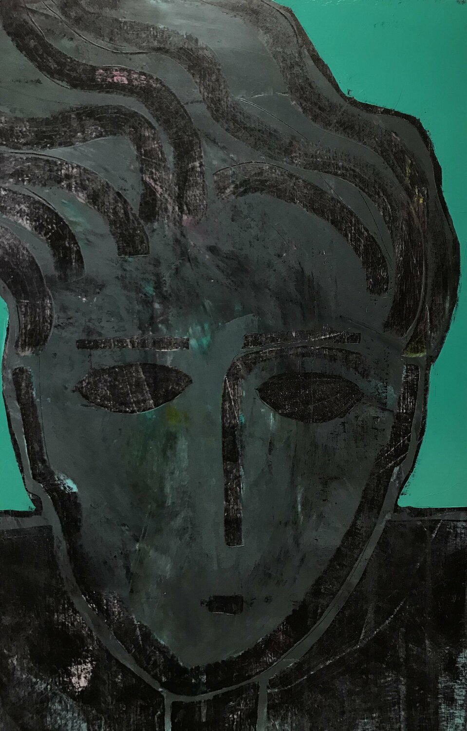 Ich kann nicht schlafen, der Mond scheint. Ich öffnete und schloss meine Augen, aber alles glänzte. Die Sterne und der Mond sind wunderschön. Alle Figuren in meinen Bildern sind stark stilisiert. Ich verwende mehrere Farbschichten, die die tiefe Textur ergeben