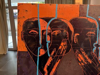 In diesem Gemälde erkundete ich die Komplexität menschlicher Verbindungen und Kommunikation. Mit kräftigem Orange und dunklem Braun habe ich Stimmen eingefangen, die flüstern, rufen und Geheimnisse teilen, und dabei abstrakte und figurative Formen miteinander vermischt. Die Energie ist intensiv und erinnert an die feine Balance zwischen Stille und Ausdruck. Dieses Werk bringt eine dynamische, zum Nachdenken anregende Atmosphäre in Ihren Raum und… lädt den Betrachter ein, über die Kraft und Fragilität von Interaktion nachzudenken.