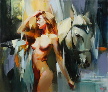 Ein Kunstliebhaber, Kauf getätigt am Januar 2024: "The song happiness", Öl auf Leinwand , 31,5x31,5in