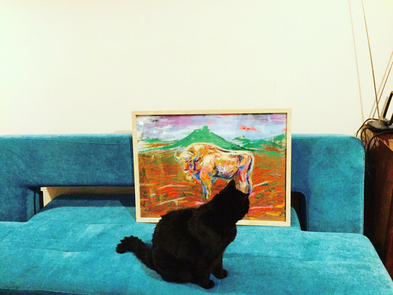 Dann gibt es dennoch eine Lösung, denn der Künstler arbeitet auch auf Kommission. Er kann stilistische Elemente, die Ihnen gefallen, in einem für Sie kreierten Werk einfließen lassen. Sie können dabei die Dimensionen bestimmen und wir verhandeln den Preis für Sie.