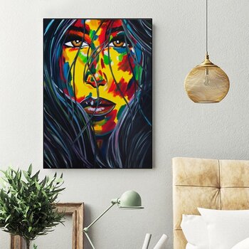 Dieses Werk vereint Expressionismus,… Pop-Art, abstrakten Realismus, Fauvismus und zeitgenössische Porträtmalerei und ist ein eindrucksvolles Symbol für Individualität, Emotion und Stärke. Seine lebendige Farbpalette und die dramatischen Kontraste machen es zu einem Blickfang in jedem Interieur.