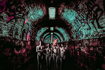 Meine NEWton-Fotomontagen sind humorvoll und kommentieren gleichzeitig die aktuelle globale Lage. Deshalb verwende ich immer wieder dieselben gleichgültigen, nackten Models, um den Menschen so darzustellen, wie wir von Geburt an nackt sind und auch im Tod. Alles andere ist Kosmetik und Uniformen. Indem ich dieselben Helmut-Newton-Mädchen in unterschiedlichen historischen Landschaften einsetze und sie immer wieder präsentiere – ähnlich wie Andy Warhol… Supermarktprodukte für den Massenkonsum simulierte –, warne ich davor, dass wir alle zunehmend von den Machthabern manipuliert werden. Und ich habe mich in den letzten 40 Jahren meiner Fotografie von Helmut inspirieren lassen. Thomas Dellert