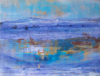 In diesem Werk habe ich tiefe Emotionen in leuchtende Blau-… und warme Ockertöne fließen lassen und Acryl, Ölpastell und Pigmente zu einer traumhaften Landschaft verwoben. Die abstrakten Formen fließen frei und vermitteln ein Gefühl von Bewegung und Ruhe. Das Bild strahlt Energie und Gelassenheit aus und lädt dazu ein, den Raum lebendig und friedlich wirken zu lassen – eine visuelle Harmonie, die die Seele berührt und die Fantasie beflügelt.
