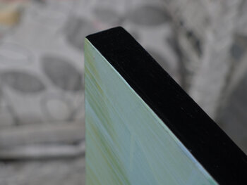 Werk auf Holz. Kann direkt aufgehängt werden. Rahmung auf Anfrage.