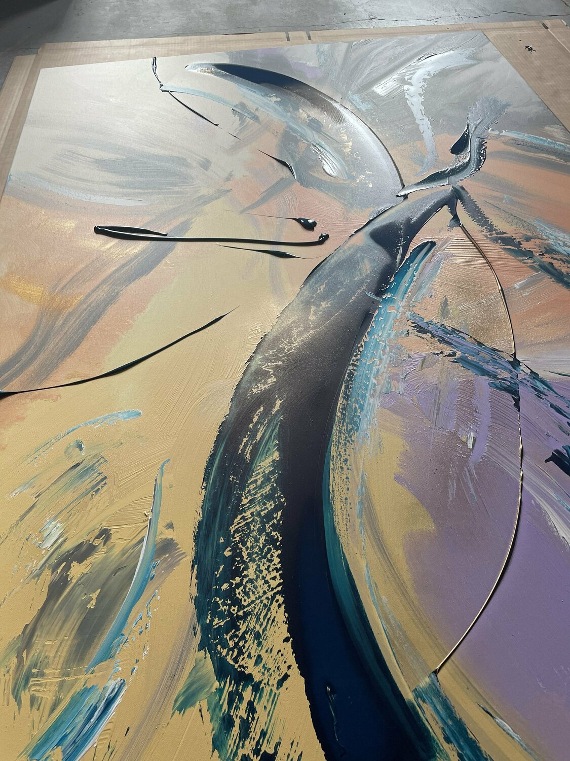 Die Leinwand wird auf einen 3D-Aluminiumrahmen gespannt und das Kunstwerk ist fertig zum Aufhängen. Eine Rahmung ist nicht erforderlich. Dieses Kunstwerk wurde mit Acrylfarbe auf gestreckter Leinwand erstellt.