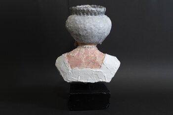 In dieser Skulptur habe ich das Spannungsverhältnis zwischen Tradition und Unvollkommenheit erforscht. Durch die Verwendung geschichteter Texturen und unterschiedlicher Materialien wollte ich gleichzeitig Widerstandsfähigkeit und Verletzlichkeit zum… Ausdruck bringen. Das Zusammenspiel von Acryl, Zement, Kunststoff und Edelstahl erzeugt eine kraftvolle, rohe Energie und regt den Betrachter dazu an, über die in ein und derselben Form koexistierende Stärke und Zerbrechlichkeit nachzudenken. Dieses Werk verleiht jedem Raum eine intensive, zum Nachdenken anregende Präsenz.