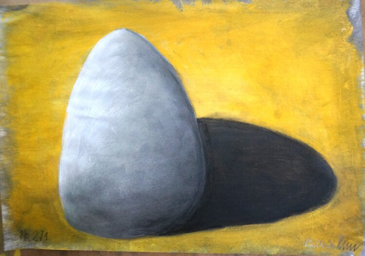 In diesem Werk habe ich das Spannungsverhältnis zwischen Licht und Schatten erforscht, um Ruhe und Beständigkeit auszudrücken. Die abstrakte Form lädt ein, das Gewicht und die Präsenz des Objekts zu spüren. Die Kombination aus Acryl und Kreide verstärkt die sanfte, fast greifbare Textur. Es bringt eine meditative Energie in jeden Raum, in dem es hängt.