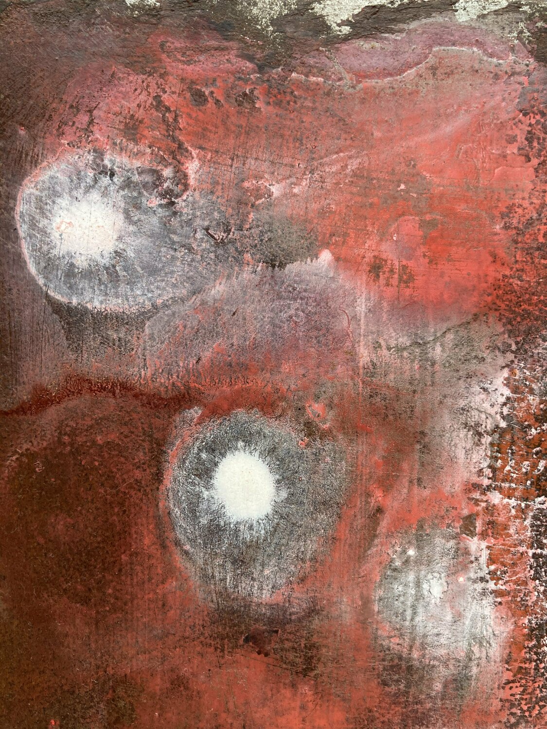 Tusche, Farbspray auf Metall