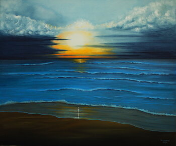 Mit diesem Ölrealismus wollte ich die stille, kraftvolle Schönheit eines Abends am Meer einfangen. Die sanften Wellen und das warme Licht vermitteln Ruhe und Hoffnung. Mein Ziel war es, den Betrachter in einen Moment der inneren Einkehr zu entführen. Dieses Bild bringt eine harmonische und beruhigende Energie in jeden Raum.